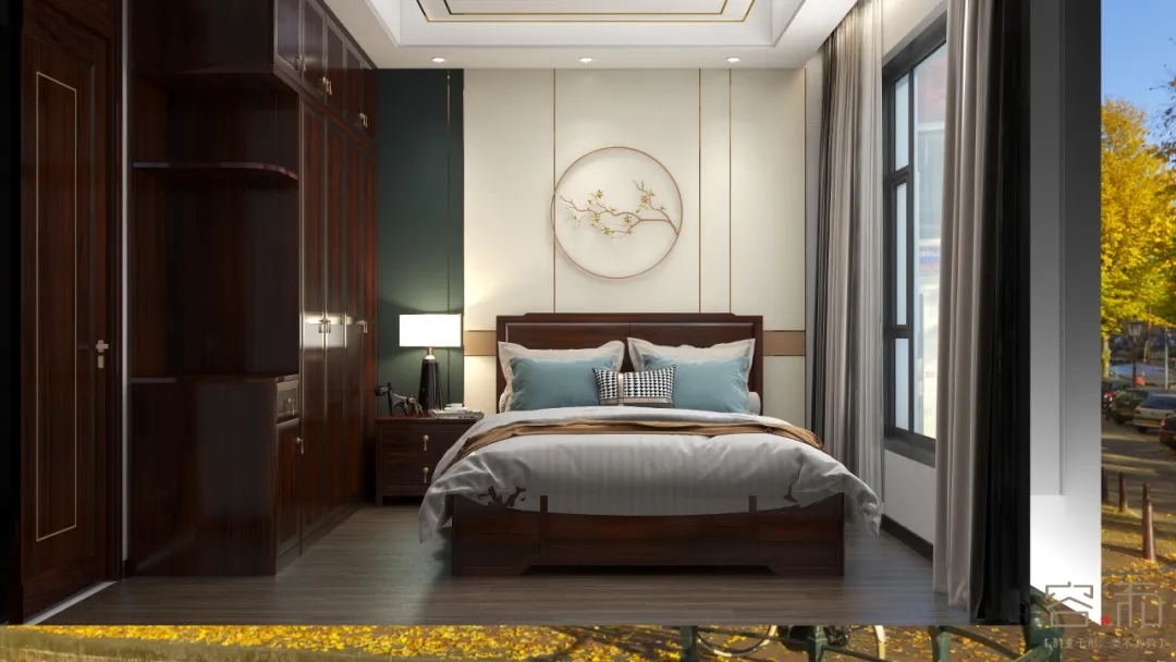 老人房背景墻選用喜鵲登枝的傳統圖案,體現老年人對傳統文化的崇敬,這個圖案也比較沉穩,沉靜,是一種生活態度和生活方式的表達。